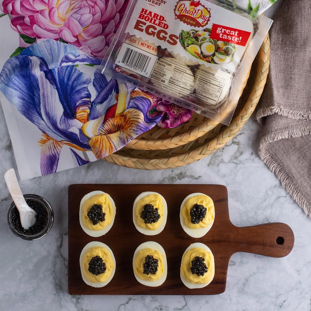 Here’s a fun way to “fancy” up your deviled eggs! Add your favorite caviar to my simple recipe. I also used pre-made hard boiled eggs from @greatdayfarms which made these so easy!
