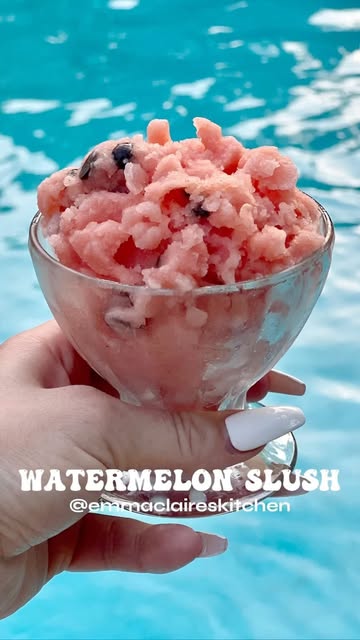 Blend together 3 cups of frozen watermelon with 1/3 cup @swervesweetie sweetener, 1/2 cup of water, 1 dropper full of watermelon @oooflavors, & 1/2 cup coconut milk. Pour into a pan, top with @choczero chocolate chips to make the watermelon “seeds” and freeze for at least 4 hours. Enjoy!View original recipe